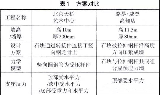 通过方案对比,路易.威登高知店开放式石块垒砌墙的施工方案更加巧妙,充分利用离散的构件材料性能,将石块与拉伸钢杆聚合形成整体的预应力墙,不仅实现了让人惊叹的建筑效果,而且该幕墙结构方案对土建主体结构的支座反力也在合理承受范围内。